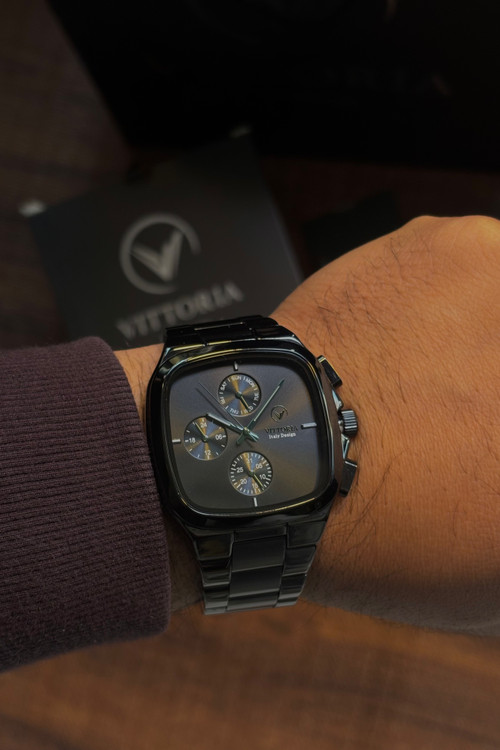 ساعت مچی مردانه ویتوریا،میشه گفت خاص ترین طراحی در برند های فشن،این ساعت روی مچ بسیار سایز مناسبی داره و رنگ سبز عقربه ها اون رو خیلی خاص تر کرده در ضمن فول دیت بودن این ساعت باعث شده که کارایی عالی هم داشته باشه واسه استفاده ی روز مره.